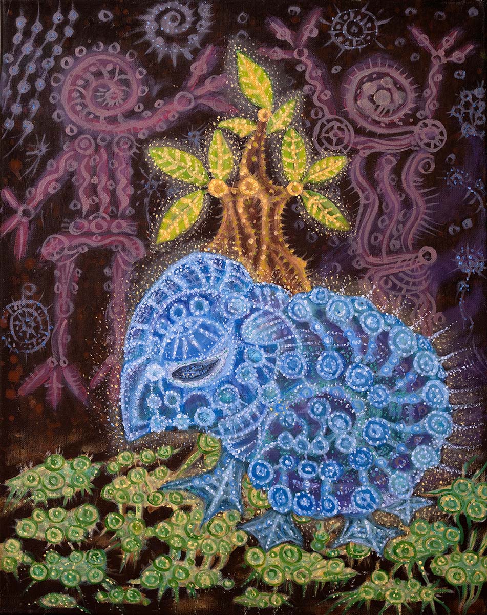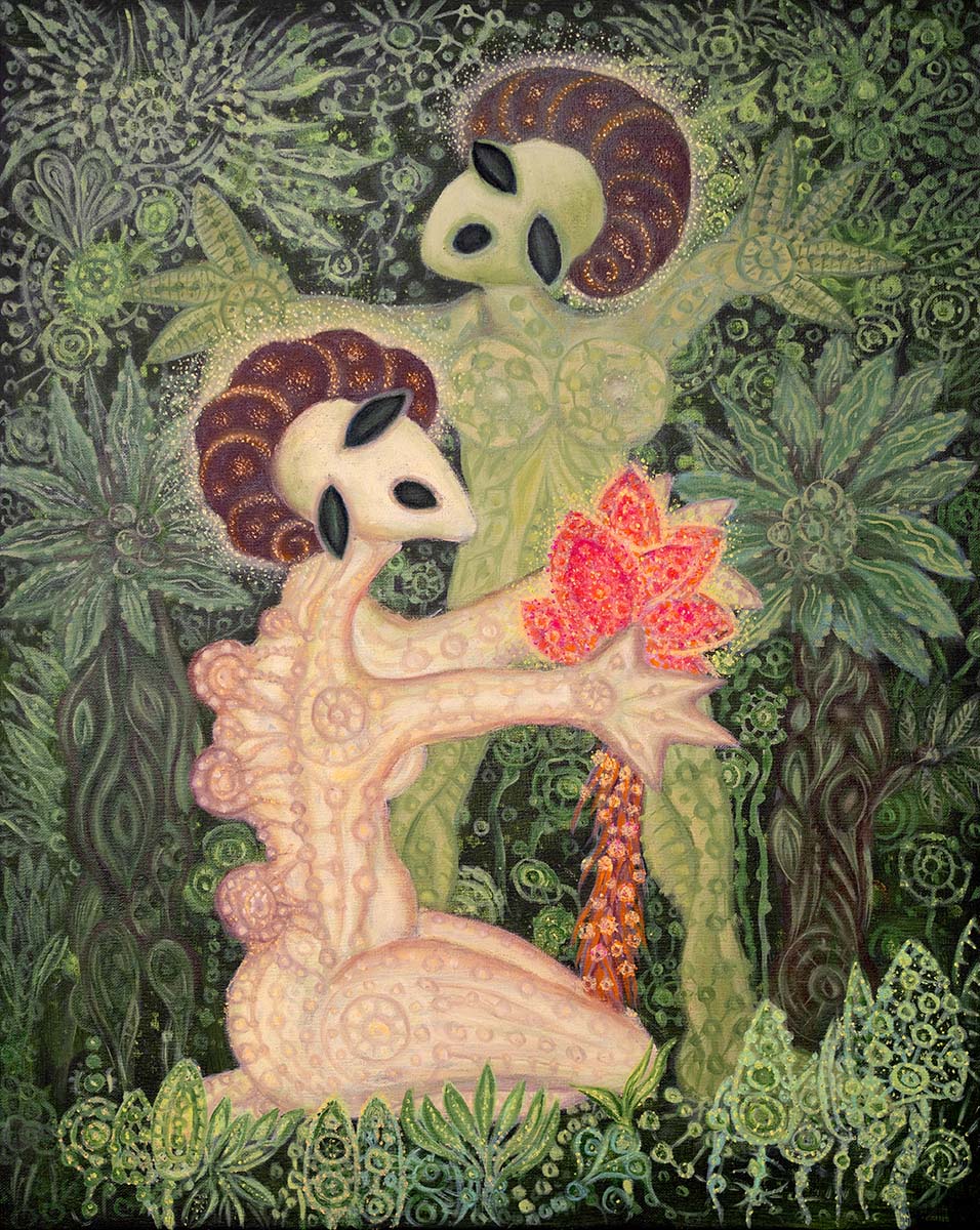 The series of paintings presented here depicts the world of the legends of the Third Sun, the visions that came to me during the wanderings of my consciousness through realms invisible to us.
